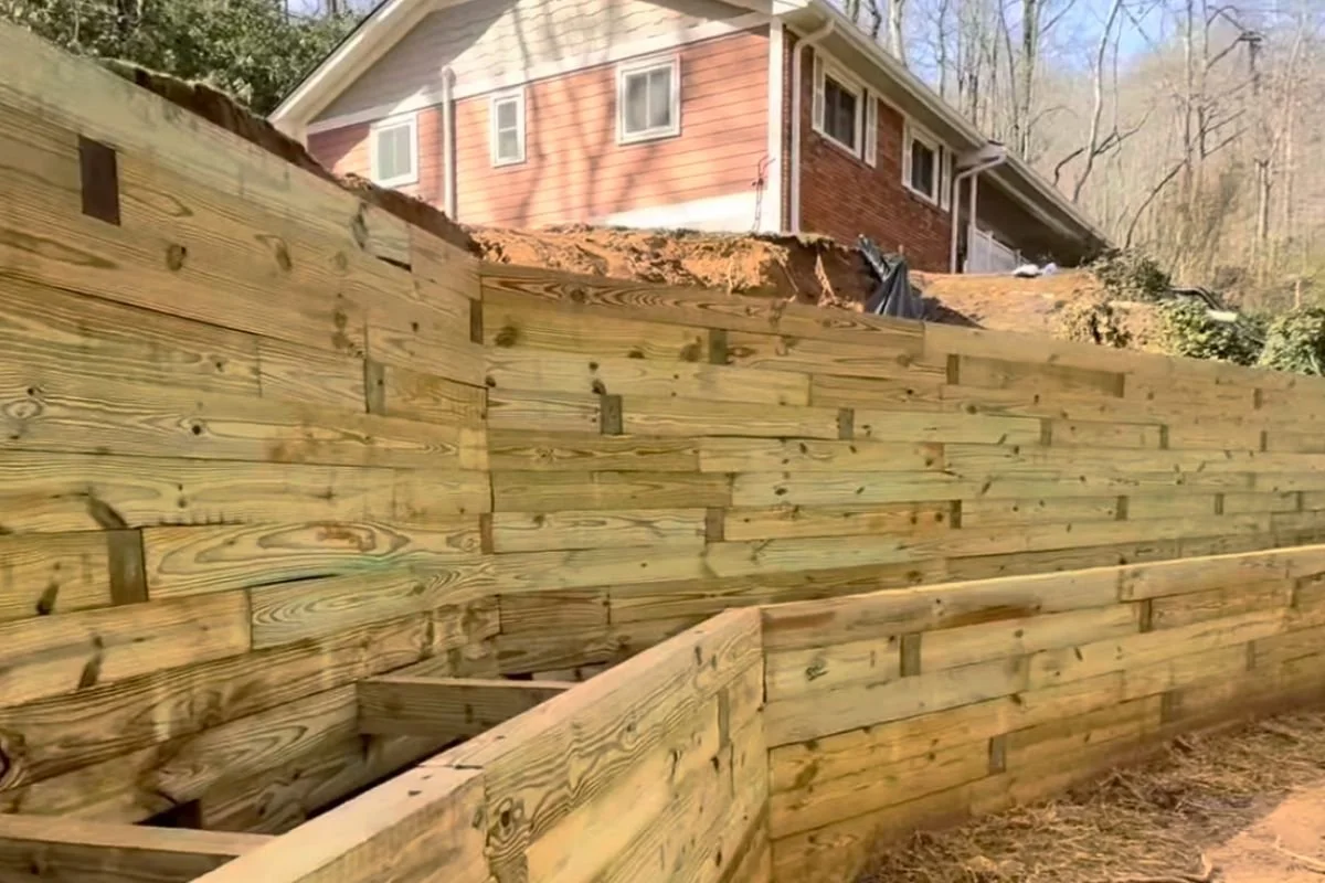 When installed with proper drainage and base preparation, timber retaining walls provide an affordable and durable option for residential landscapes across Western North Carolina.